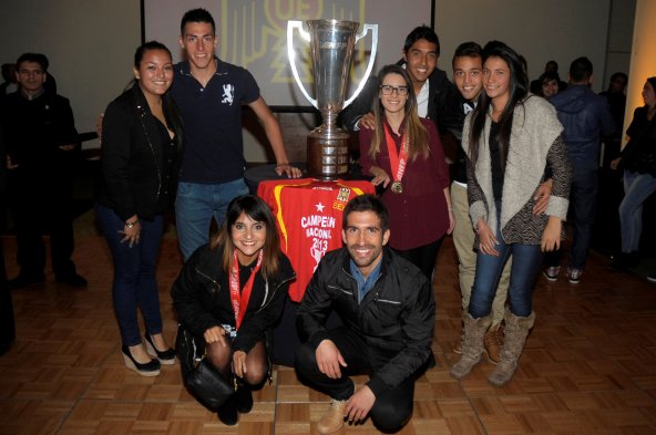 El plantel, cuerpo técnico y dirigentes de Unión Española celebraron en el Hotel Intercontinental el título del Campeona 2013, mientras los hinchas lo hicieron en Plaza Italia.