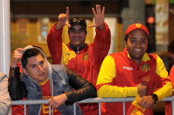 El plantel, cuerpo técnico y dirigentes de Unión Española celebraron en el Hotel Intercontinental el título del Campeona 2013, mientras los hinchas lo hicieron en Plaza Italia.
