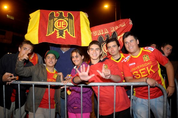 El plantel, cuerpo técnico y dirigentes de Unión Española celebraron en el Hotel Intercontinental el título del Campeona 2013, mientras los hinchas lo hicieron en Plaza Italia.