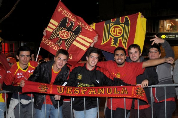 El plantel, cuerpo técnico y dirigentes de Unión Española celebraron en el Hotel Intercontinental el título del Campeona 2013, mientras los hinchas lo hicieron en Plaza Italia.