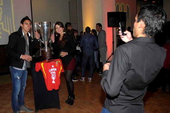 El plantel, cuerpo técnico y dirigentes de Unión Española celebraron en el Hotel Intercontinental el título del Campeona 2013, mientras los hinchas lo hicieron en Plaza Italia.