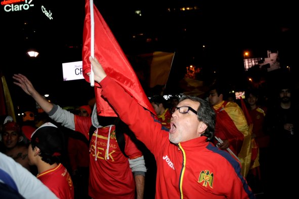 El plantel, cuerpo técnico y dirigentes de Unión Española celebraron en el Hotel Intercontinental el título del Campeona 2013, mientras los hinchas lo hicieron en Plaza Italia.