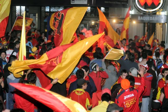 El plantel, cuerpo técnico y dirigentes de Unión Española celebraron en el Hotel Intercontinental el título del Campeona 2013, mientras los hinchas lo hicieron en Plaza Italia.