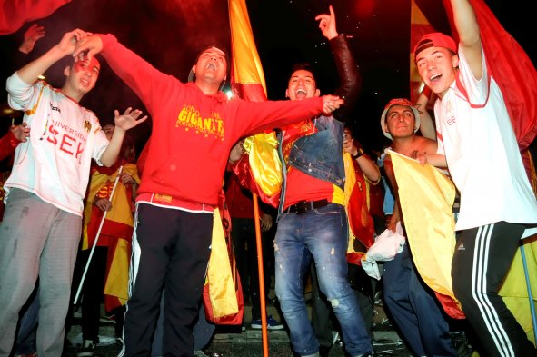 El plantel, cuerpo técnico y dirigentes de Unión Española celebraron en el Hotel Intercontinental el título del Campeona 2013, mientras los hinchas lo hicieron en Plaza Italia.