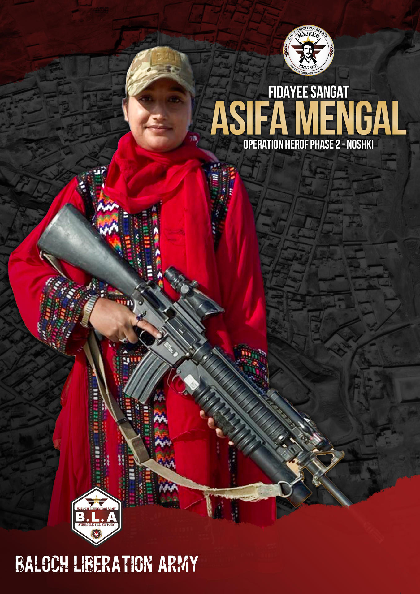 La joven Asifa Mengal es uno de los rostros de la última oleada de ataques suicidas. Según el BLA, se alistó en la Brigada Majeed al cumplir 21 años, preparada para unirse a una nueva estrategia de ataques.
