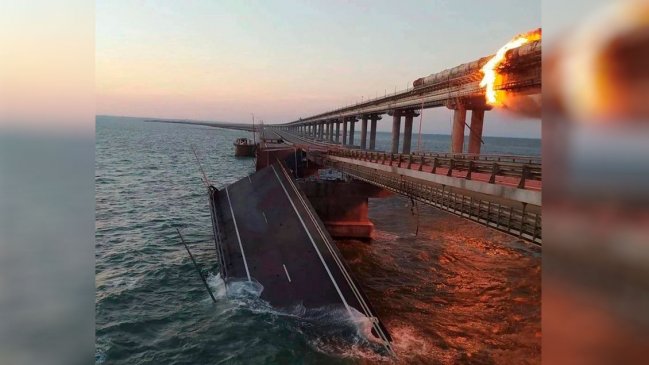 Una fuerte explosión en el puente de Crimea, que une la ocupada península con Rusia y que ha quedado dañado, encendió este sábado las alarmas en Moscú y Simferópol, donde se sospecha que detrás de la destrucción parcial de esta infraestructura, símbolo de la anexión rusa en 2014, está Ucrania.
