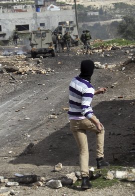Soldados israelíes se enfrentaron este viernes con manifestantes palestinos por el asentamiento israelí de Qadomem, cerca de Nablus, en Cisjordania, Palestina.