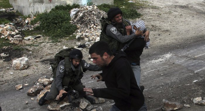 Soldados israelíes se enfrentaron este viernes con manifestantes palestinos por el asentamiento israelí de Qadomem, cerca de Nablus, en Cisjordania, Palestina.