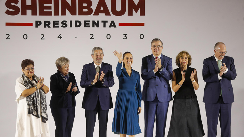 La presidenta electa de México, Claudia Sheinbaum, junto a los primeros personeros de su gobierno. (Foto:EFE)