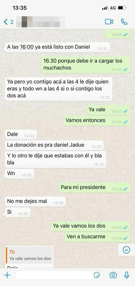 - Matías Muñoz: Dale. La donación es para Daniel Jadue. Y lo otro le dije que estabas con él y bla bla.