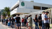 | Larga fila afuera del Liceo Estación Central para poder ingresar a votar.