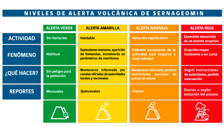 El Servicio Nacional de Geología y Minería (Sernageomin) elevó a amarilla la alerta técnica de riesgo del Complejo Volcán Puyehue - Cordón Caulle, ubicado en la Región de Los Ríos, cerca del límite con Los Lagos y de la frontera con Argentina.