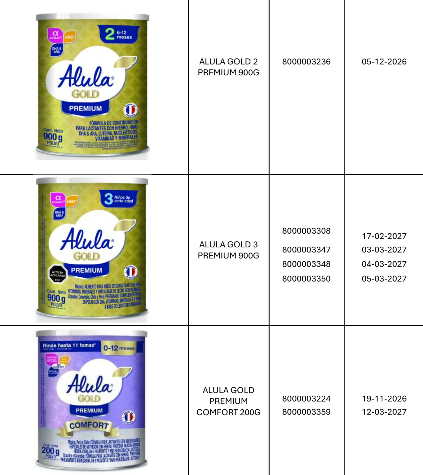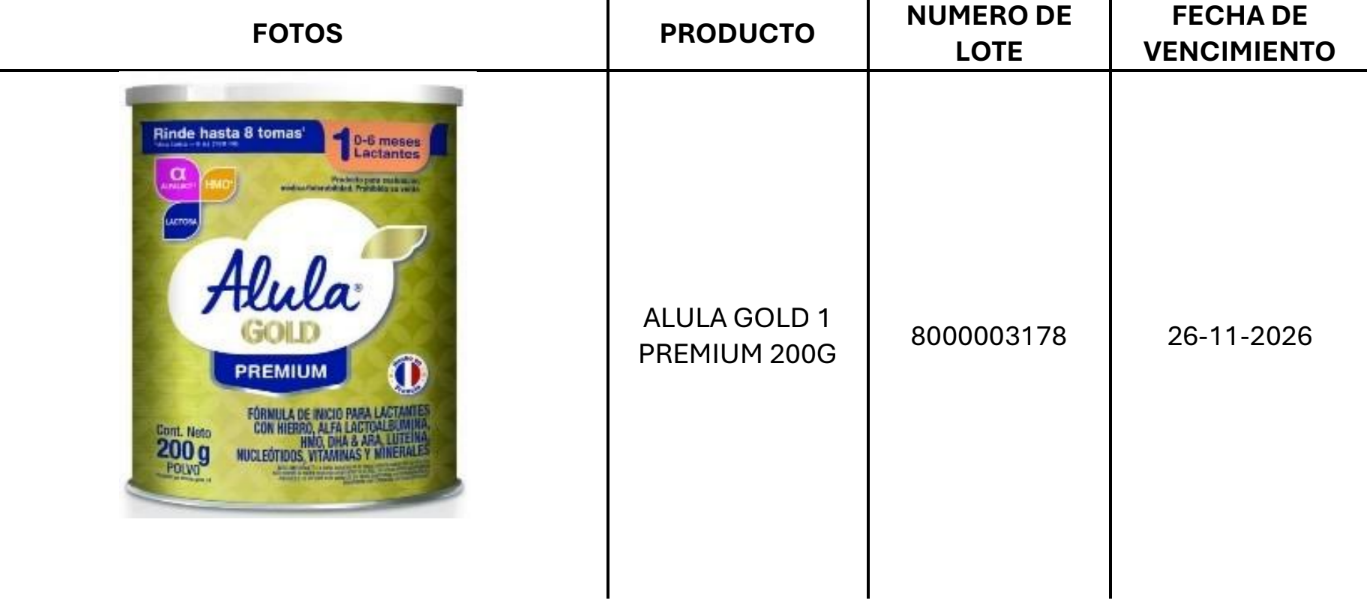El Ministerio de Salud emitió una alerta alimentaria por riesgo de contaminación de una serie de productos de la marca Alula, que produce fórmulas infantiles, e instó a impedir su consumo.