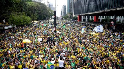 Miles de personas participaron durante una manifestación hoy domingo contra el Partido de los Trabajadores (PT) y su...